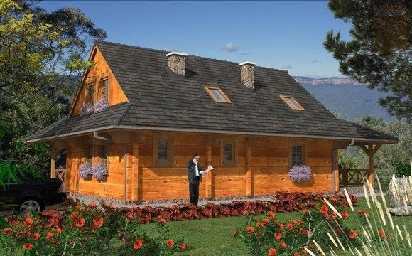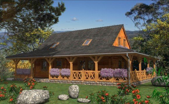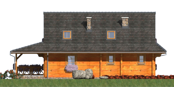Ściany zewnętrzne: z bali drewnianych gr. 12, 16, 20, 24 cm. ocieplone od wewnątrz wełną mineralną lub 52 cm bez ocieplenia
