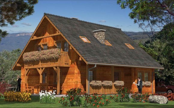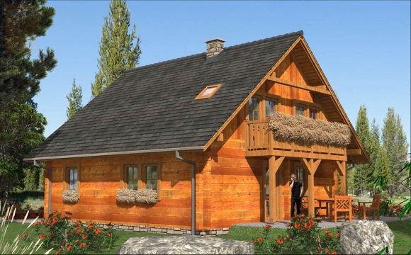 Ściany zewnetrzne: z bali drewnianych gr. 12, 16, 20, 24 cm. ocieplone od wewnątrz wełną mineralną lub 52 cm bez ocieplenia