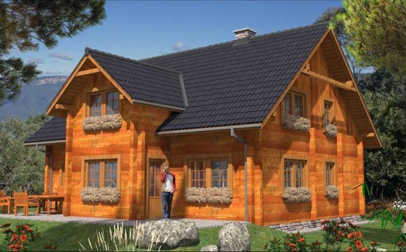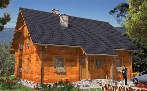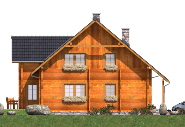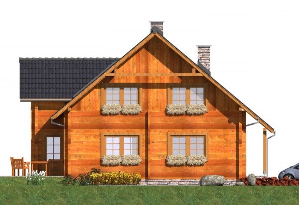 Ściany zewnętrzne: z bali drewnianych gr. 12, 16, 20, 24 cm. ocieplone od wewnątrz wełną mineralną lub 52 cm bez ocieplenia