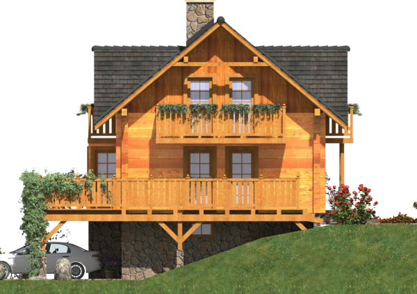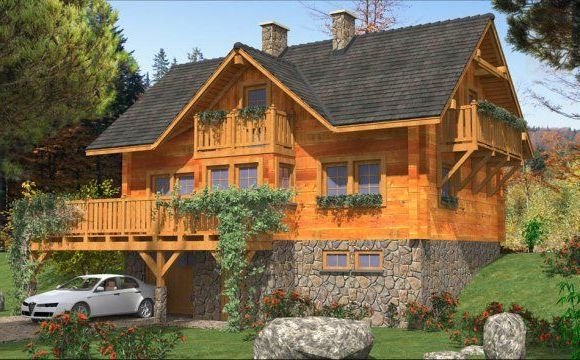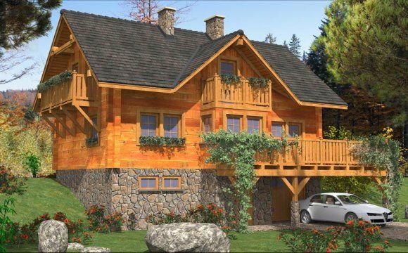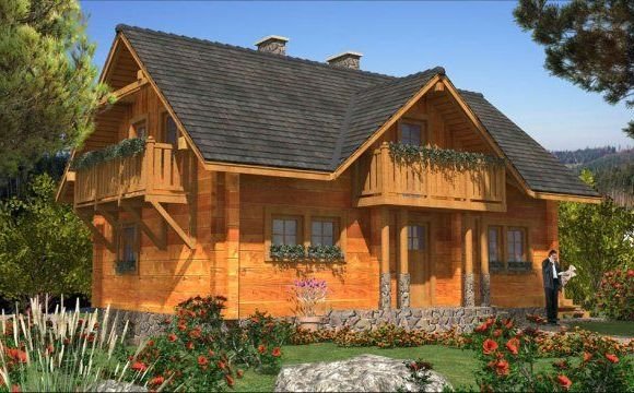 Ściany zewnetrzne: z bali drewnianych gr. 12, 16, 20, 24 cm. ocieplone od wewnątrz wełną mineralną lub 52 cm bez ocieplenia