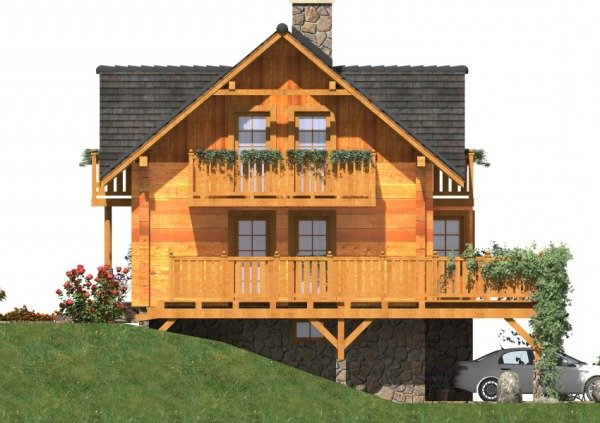 Belkowy, drewniany, otwarty, nad piwnicą – żelbetowy