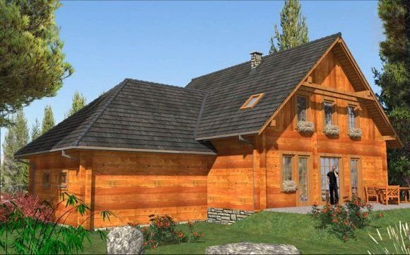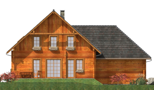 - Ściany zewnętrzne: z bali drewnianych gr. 12, 16, 20, 24, 30 cm. ocieplone od wewnątrz wełną mineralną, gr. 52 cm bez ocieplenia.