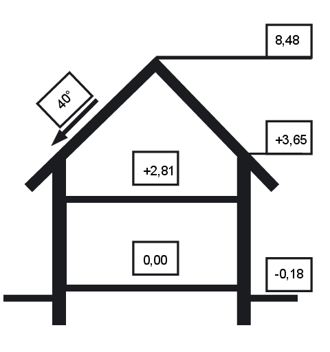 - Kąt nachylenia dachu 40.00°
