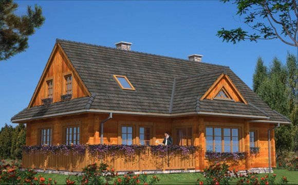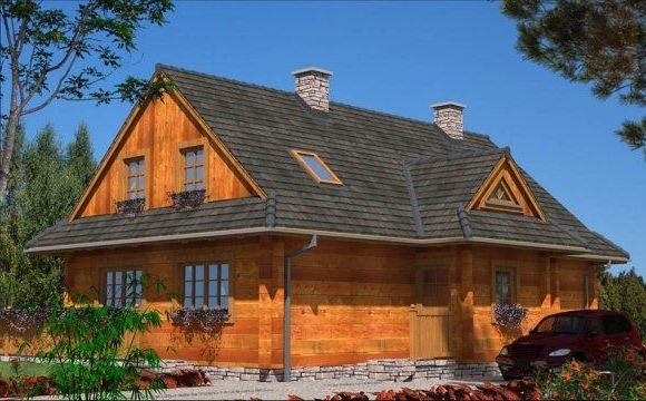 Ściany zewnętrzne: z bali drewnianych gr. 12, 16, 20, 24 cm. ocieplone od wewnątrz wełną mineralną lub 52 cm bez ocieplenia
