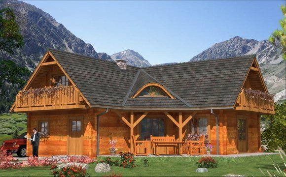 Ściany zewnętrzne: z bali drewnianych gr. 12, 16, 20, 24 cm. ocieplone od wewnątrz wełną mineralną lub 52 cm bez ocieplenia
