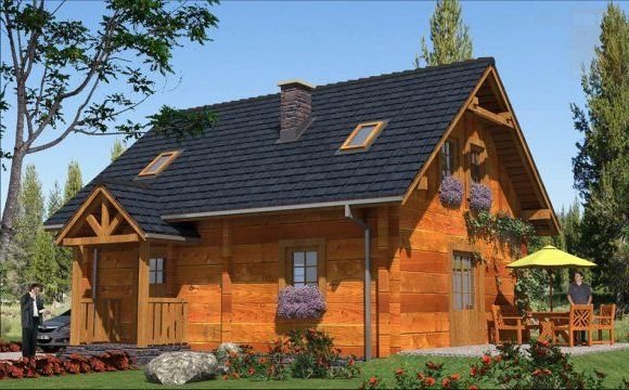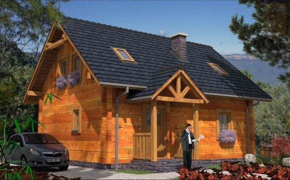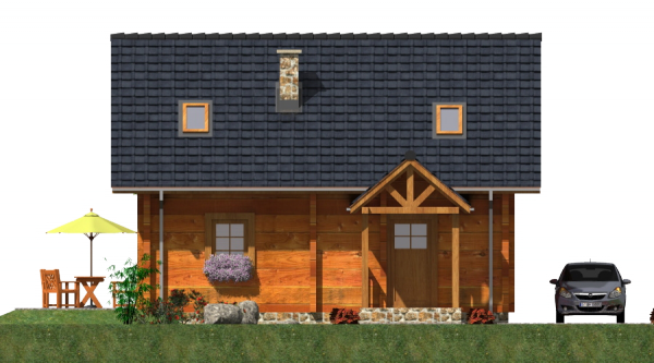 Ściany zewnętrzne: z bali drewnianych gr. 12, 16, 20, 24 cm. ocieplone od wewnątrz wełną mineralną lub 52 cm bez ocieplenia