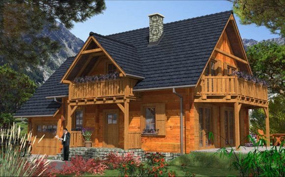 Ściany zewnętrzne: z bali drewnianych gr. 12, 16, 20, 24 cm. ocieplone od wewnątrz wełną mineralną lub 52 cm bez ocieplenia