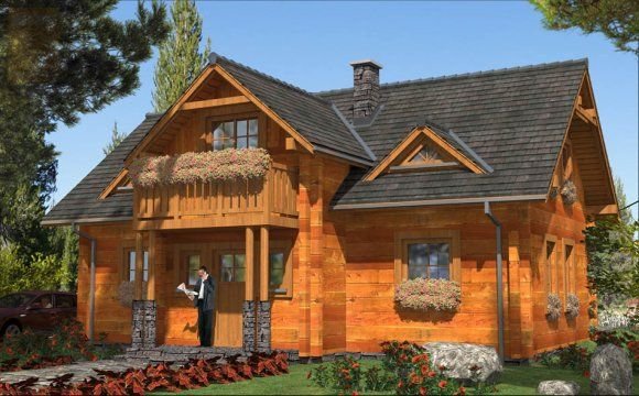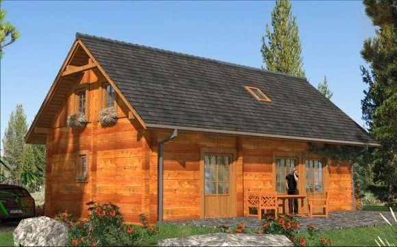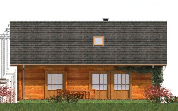 Ściany zewnętrzne: z bali drewnianych gr. 12, 16, 20, 24 cm. ocieplone od wewnątrz wełną mineralną lub 52 cm bez ocieplenia