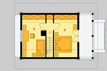 Dom letniskowy, parterowy, z poddaszem użytkowym.
