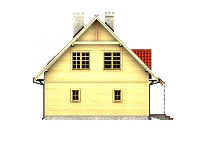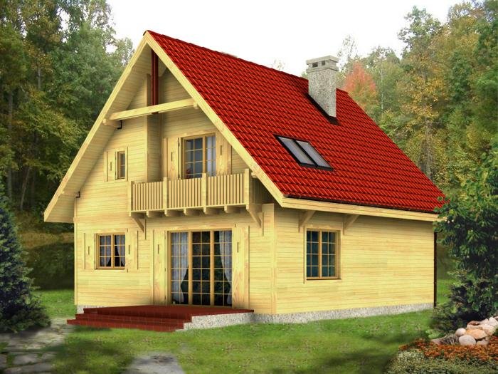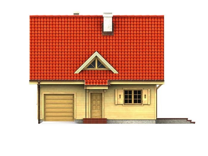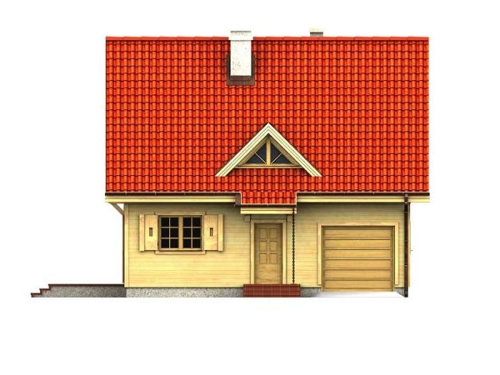 * dom jednorodzinny w technologii szkieletu drewnianego, niepodpiwniczony, z użytkowym poddaszem , garaż zlokalizowany w obrębie bryły budynku