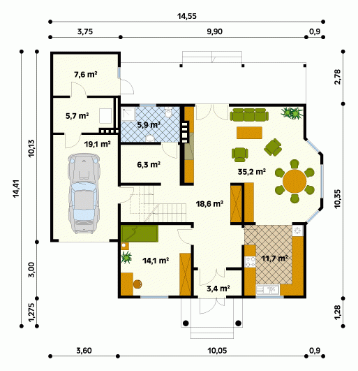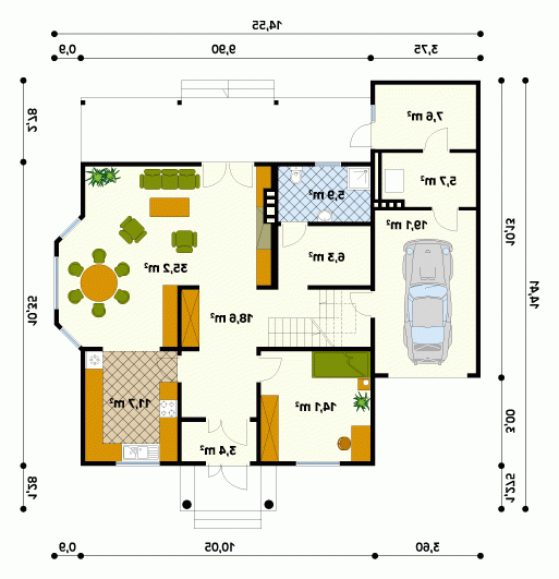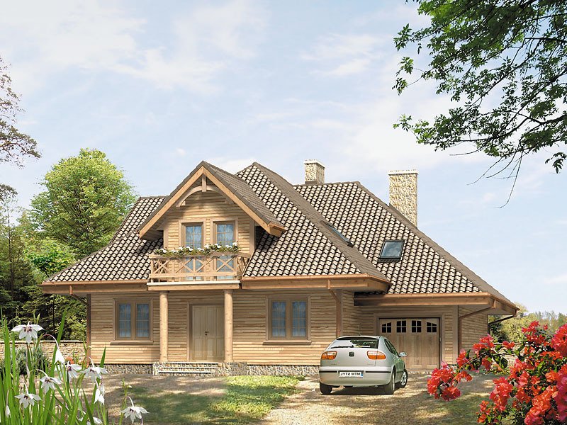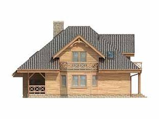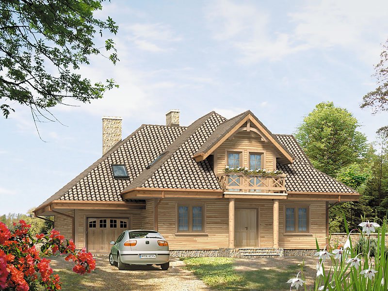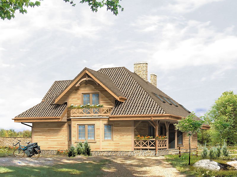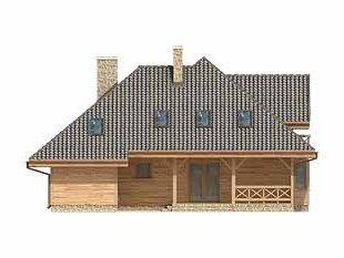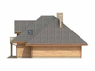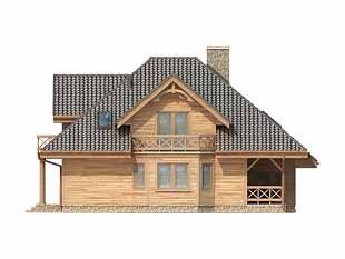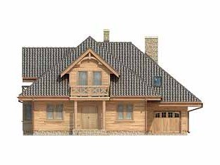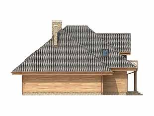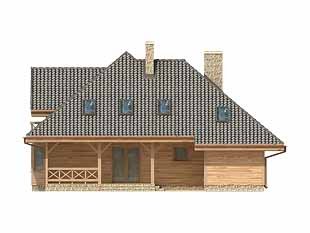 Dom o konstrukcji drewnianej, szkieletowej. Prosty układ funkcjonalny z dwoma pokojami na parterze. Duży zadaszony taras od nasłonecznionej strony. Na poddaszu główna sypialnia z niezależną łazienką i garderobą. Nad garażem i kotłownią pomieszczenie strychowe do adaptacji na różne cele.