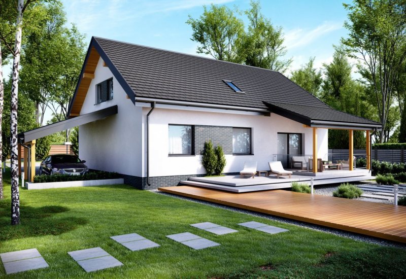NICEA - dom mieszkalny wolnostojący z strychem do adaptacji, w technologii szkieletowej. Projekt składa się z części architektonicznej, konstrukcyjnej, wewnętrznych instalacji sanitarnych i instalacji elektrycznej. W projekcie załączone są podstawowe zestawienie stali, drewna i stolarki okienno-drzwiowej. Do projektu dołączamy bezpłatną zgodę na wprowadzenie zmian, oświadczenie projektantów o wykonaniu projektu zgodnie z obowiązującymi normami i przepisami oraz kserokopie uprawnień projektantów wraz z aktualnym wpisem do izby.