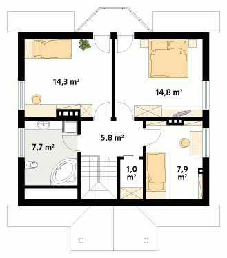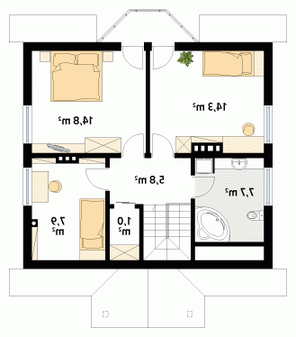 Dom jednorodzinny, wolno stojący, parterowy z użytkowym poddaszem, niepodpiwniczony. Pomimo niewielkich gabarytów zapewnia wygodę 4 – 5-osobowej rodzinie. Budynek o zwartej bryle z tradycyjnie ukształtowanym dachem.
