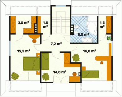 Dom parterowy z użytkowym poddaszem, niepodpiwniczony. Na poddaszu zaprojektowano trzy sypialnie z garderobami, łazienką oraz pomieszczenie gospodarcze. Przeznaczony dla 4-osobowej rodziny. Klasyczny dom o prostej bryle, nawiązujący swoim charakterem do architektury ziemiańskiej.