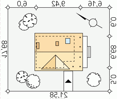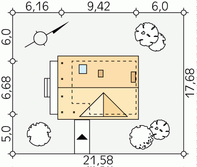 - Min. wymiary działki 21.58x17.68 m