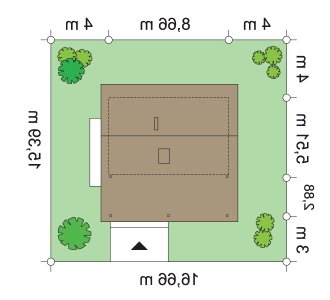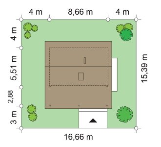 - Min. wymiary działki 16.66x15.39 m