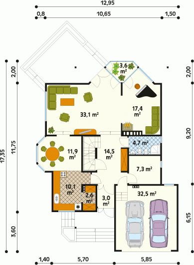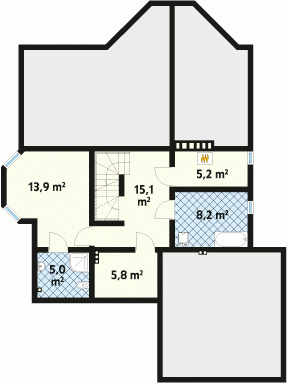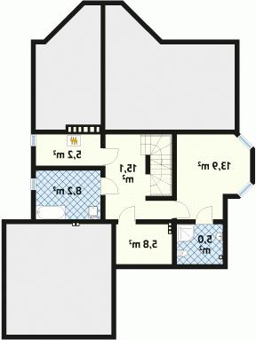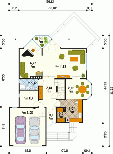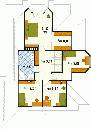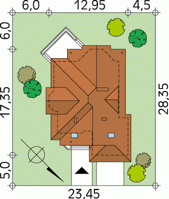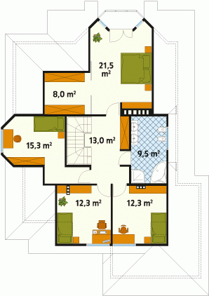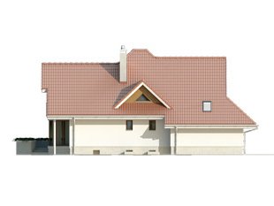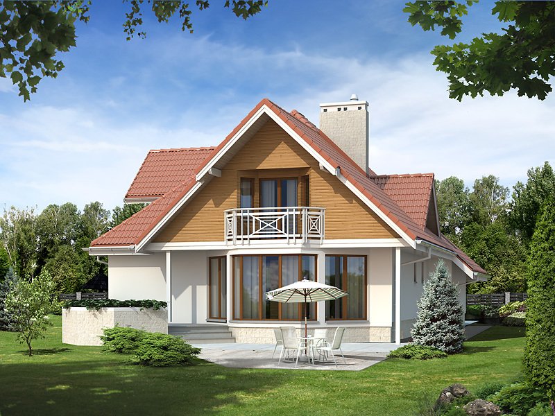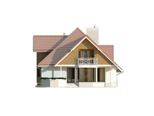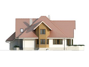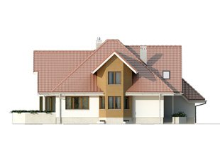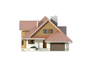 Dom jednorodzinny z użytkowym poddaszem. Wygodny reprezentacyjny dom dla 5 – 7-osobowej rodziny. Rozbudowana część dzienna i wygodne sypialnie na poddaszu. Podwójny garaż.
