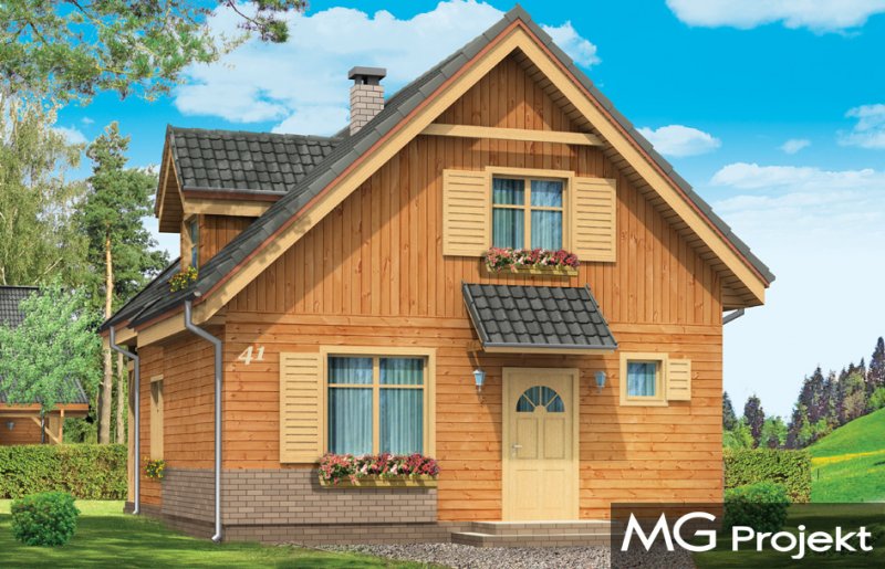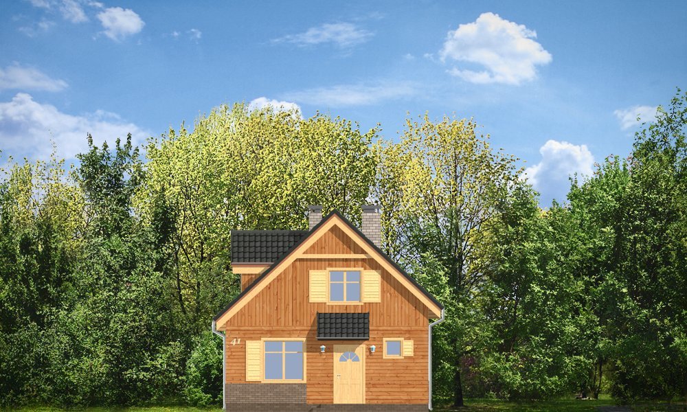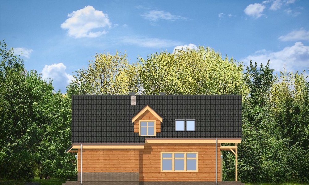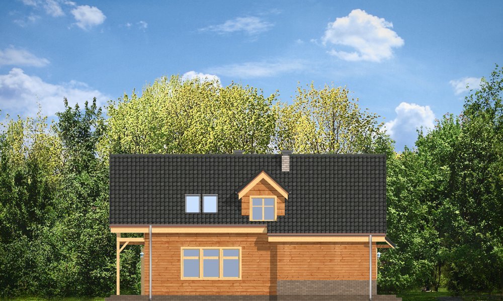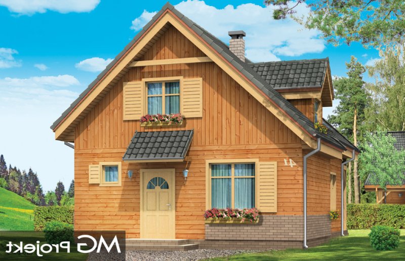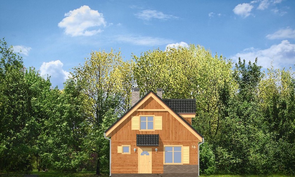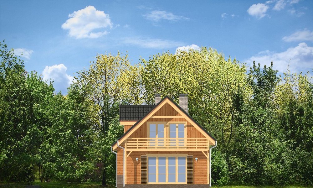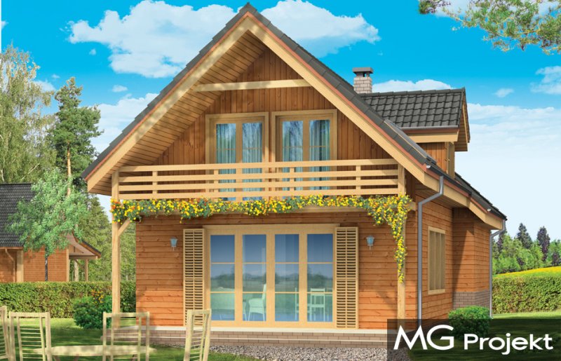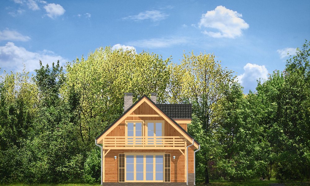Słowik to parterowy budynek z poddaszem użytkowym. Dom jednorodzinny przeznaczony dla rodziny 4-5cio osobowej, mogący służyć zarówno jako domek jednorodzinny całoroczny jak i letniskowy. Urokliwy, dzięki ciekawym detalom dom ma w rzeczywistości dość prosty układ. Budynek, ze względu na nieskomplikowaną konstrukcję, będzie łatwy w budowie, co odbije się pozytywnie na kosztach inwestycji. Projekt został stworzony w technologii szkieletowej drewnianej. Elewacja domu jest szalowana deskami, ale można również wykonać ją jako tynkową. Domek dzięki niewielkiej szerokości doskonale wpasuje się również na wąską działkę. Na parterze domu, zaprojektowano jednoprzestrzenną część dzienną, z salonem, holem i częściowo otwartą kuchnią. Z salonu szerokimi drzwiami wychodzimy na częściowo zadaszony taras. W projekcie obok przedsionka umieszczono kotłownię. Na poddaszu znajdują się trzy sypialnie i łazienka. Projekt dostępny jest też w wersji odbicia lustrzanego.