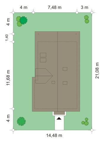 - Min. wymiary działki 14.48x14.48 m