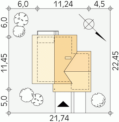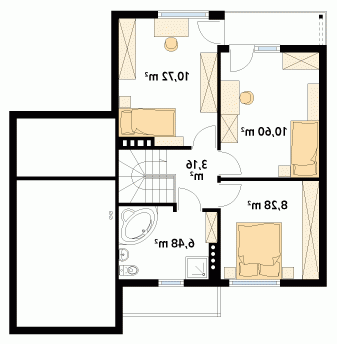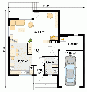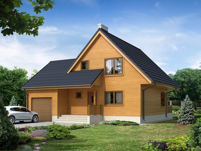 Wolno stojący dom jednorodzinny z użytkowym poddaszem, bez podpiwniczenia. Możliwość budowy w układzie bliźniaczym. Niewielki dom o zwartej bryle i racjonalnym układzie wewnętrznym. Garaż i pomieszczenie techniczne połączone z parterem. Powierzchnia przejść i korytarzy zredukowana do minimum. Na poddaszu wygodna łazienka i sypialnie dla 4 osób.