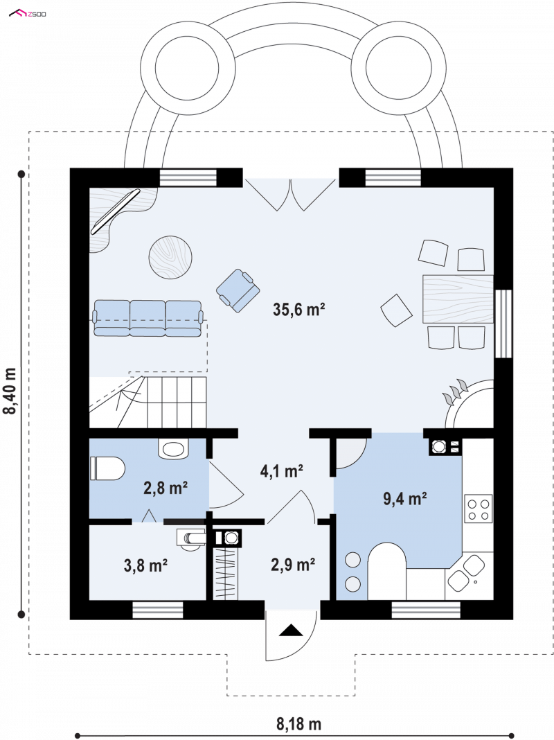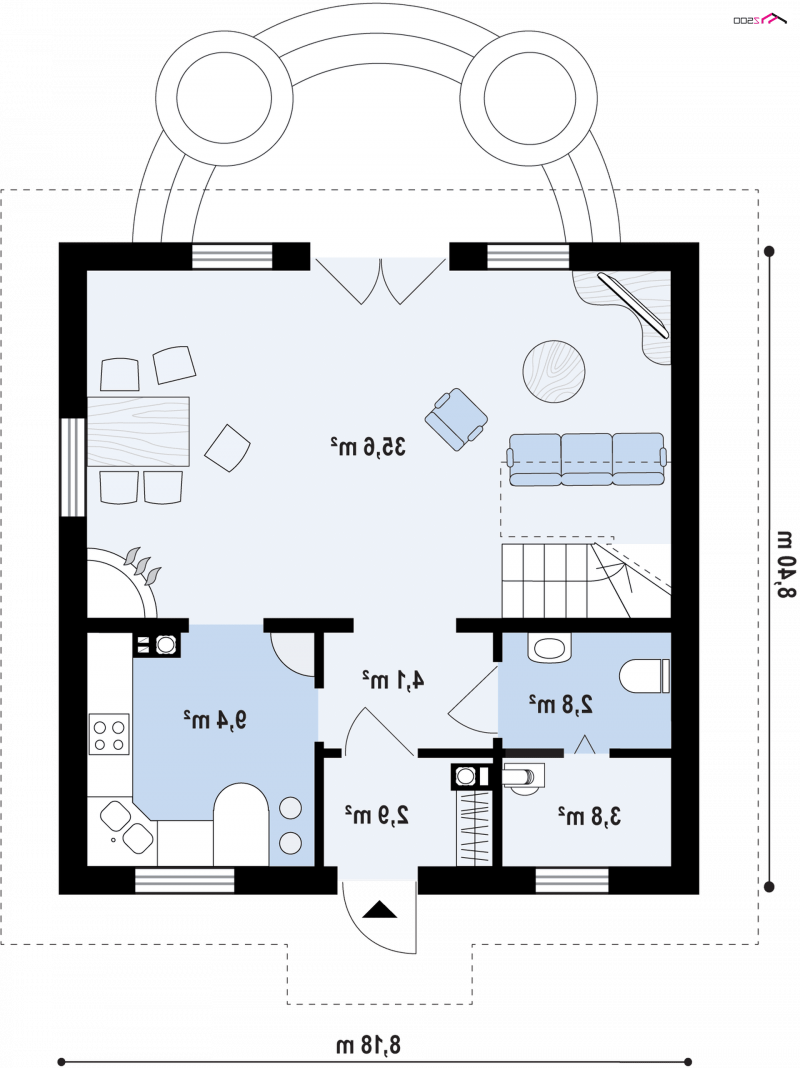 Projekt domu Z1 D bl mimo prostej bryły wygląda ciekawie i atrakcyjnie przez drobną stylizację. Wpływa to na obniżenie kosztów budowy. Projekt dzięki dobrze rozplanowanej funkcji wnętrza jest przestronny, a jego układ konstrukcyjny zapewnia swobodę w zagospodarowaniu powierzchni, zapewniając optymalne użytkowanie na co dzień.