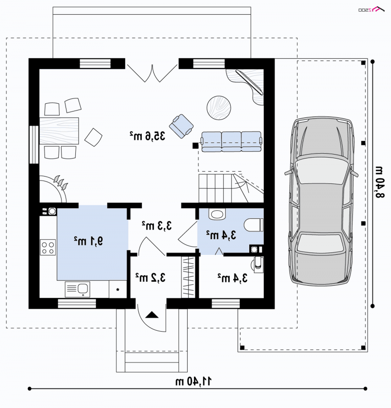 - Min. wymiary działki 16.40x17.38 m