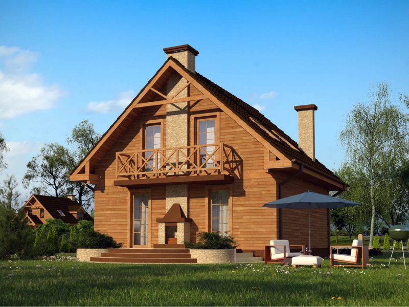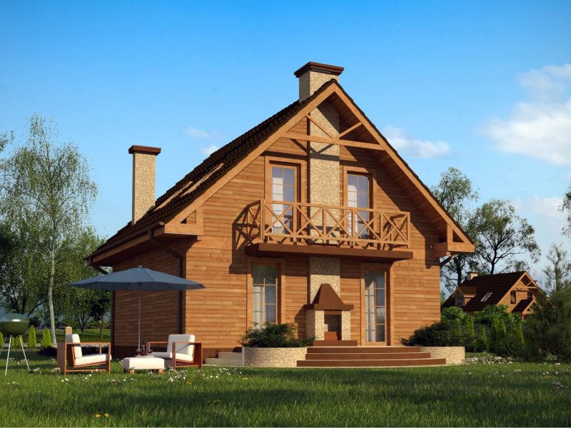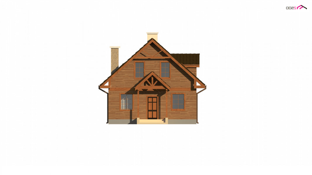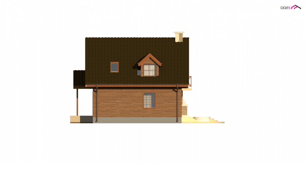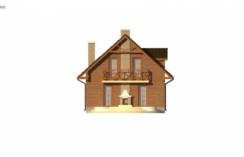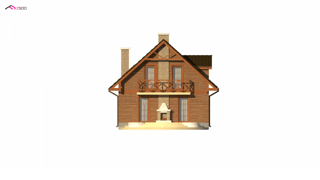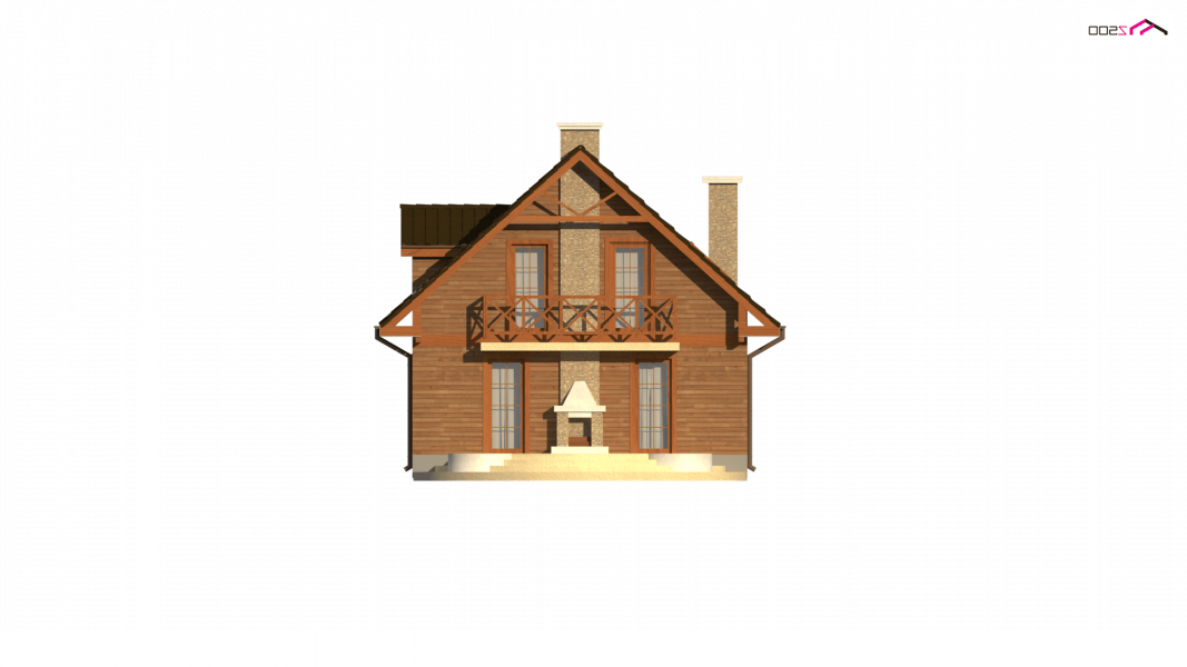 Na parterze usytuowano wygodny pokój dzienny z przejściem do kuchni. Salon, w którym znajduje się „podwójny” kominek na ścianie od ogrodu– tworząc na tarasie miejsce do grilla. W projekcie na poddaszu znajduje się balkon od strony ogrodu, co dodatkowo daje cień na tarasie w czasie upalnych dni.