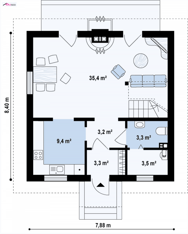 Projekt domu Z1 LD 2k mimo prostej bryły wygląda ciekawie i atrakcyjnie przez drobną stylizację. Wpływa to na obniżenie kosztów budowy. Projekt dzięki dobrze rozplanowanej funkcji wnętrza jest przestronny, a jego układ konstrukcyjny zapewnia swobodę w zagospodarowaniu powierzchni, zapewniając optymalne użytkowanie na co dzień.