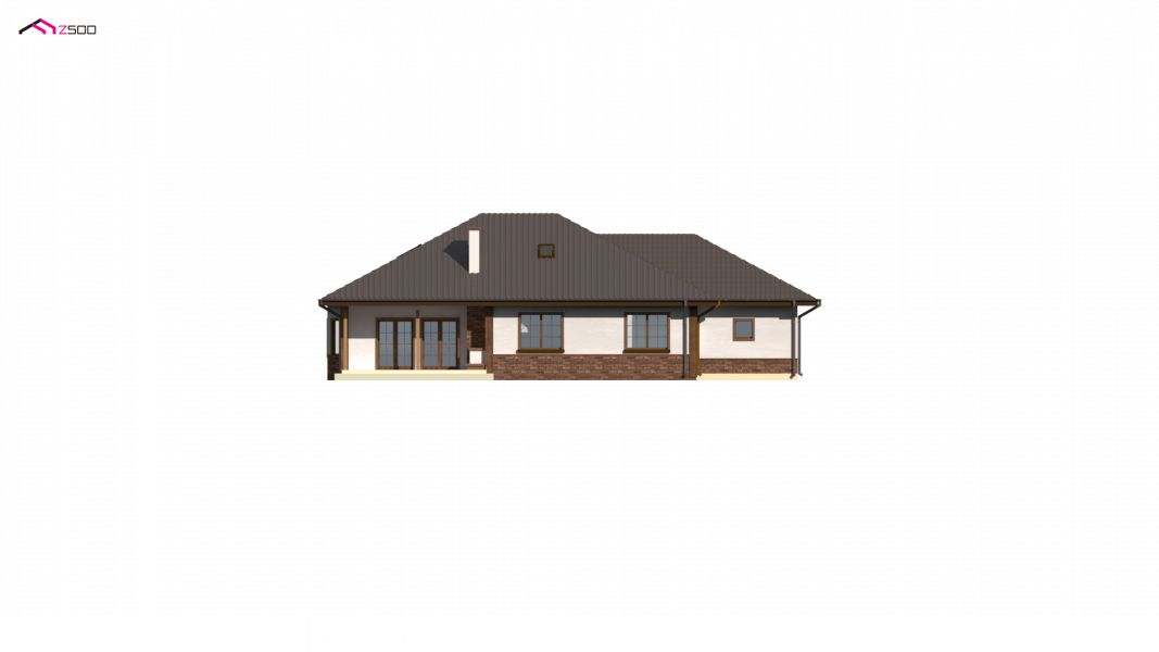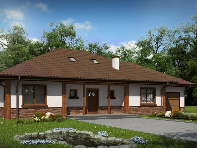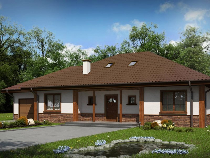 Podwariant z garażem po lewej stronie, szkielet drewniany.