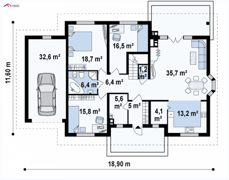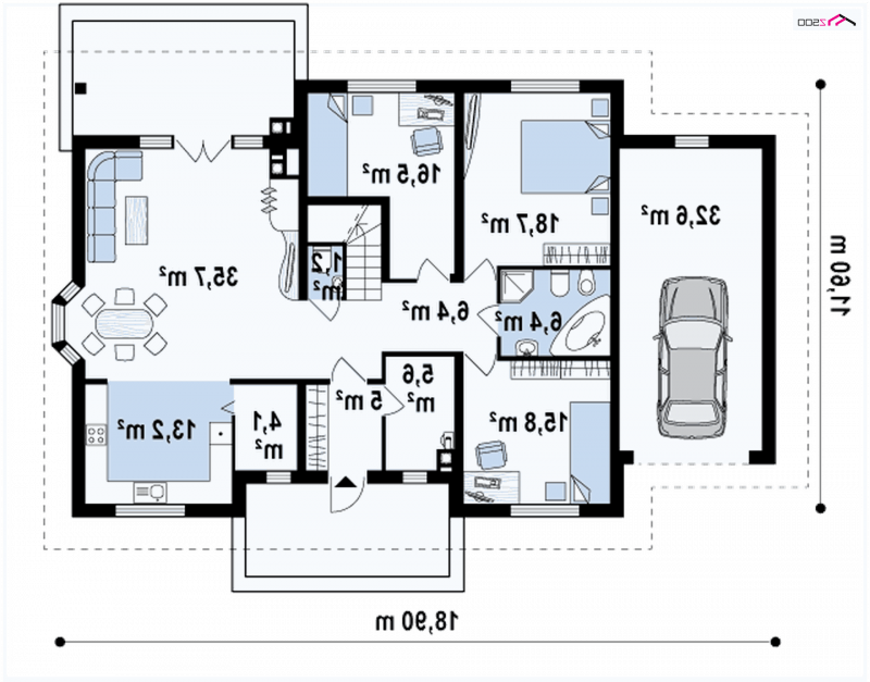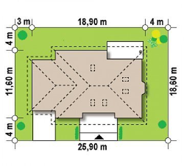 - Min. wymiary działki 19.60x25.90 m