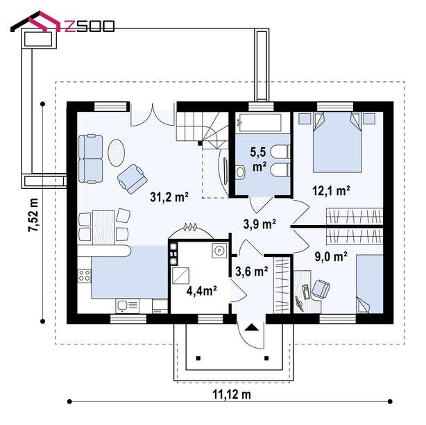 Z12 to niezwykle uroczy i przyjemny w wyglądzie dom o dużych możliwościach aranżacji.