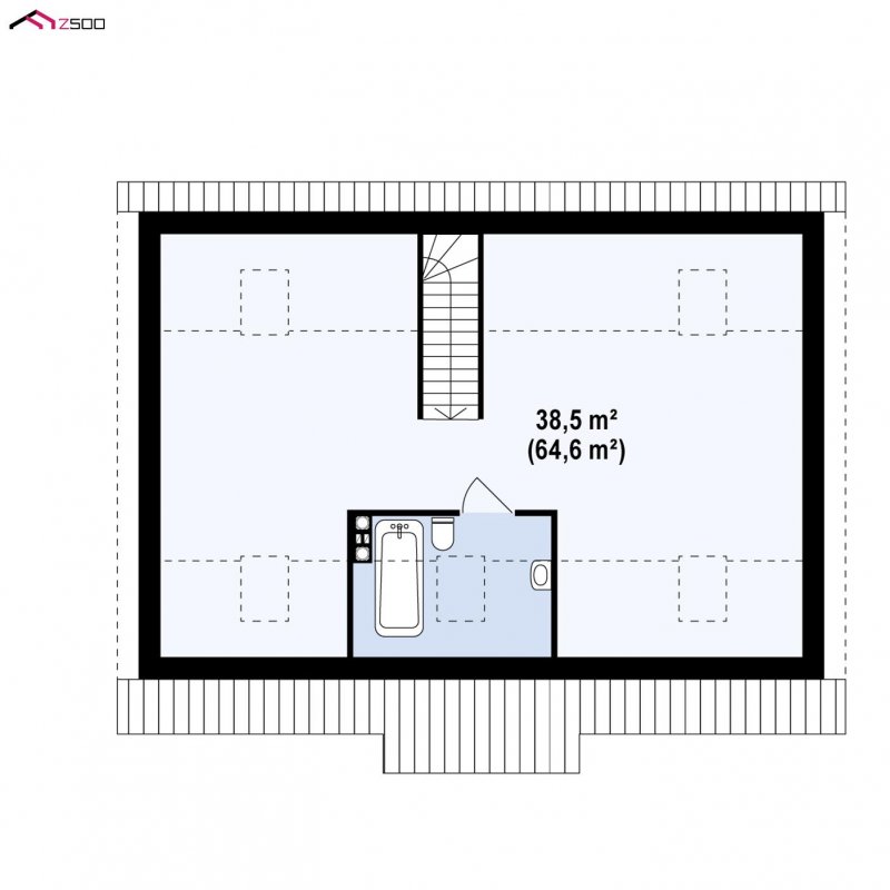 Z12 D to zgrabny dom parterowy z opcją zagospodarowania poddasza. Prosta bryła oraz możliwością etapowania inwestycji czynią go tanią i ekonomiczną inwestycją. Konstrukcja oparta na ścianach zewnętrznych pozwala na dowolne kształtowanie wnętrza ściankami działowymi.