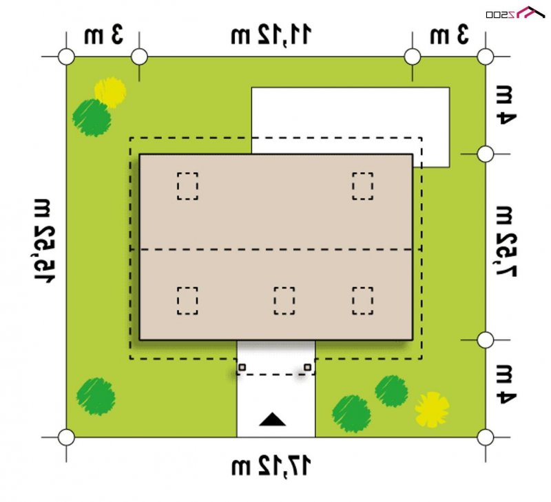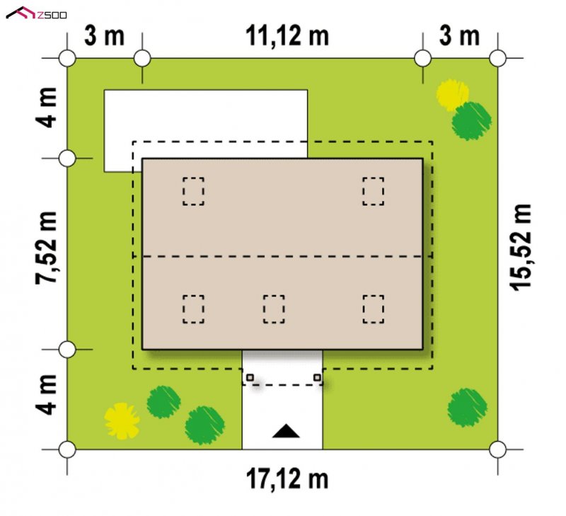 - Min. wymiary działki 15.52x17.12 m