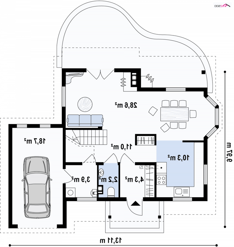 - Min. wymiary działki 17.97x20.11 m