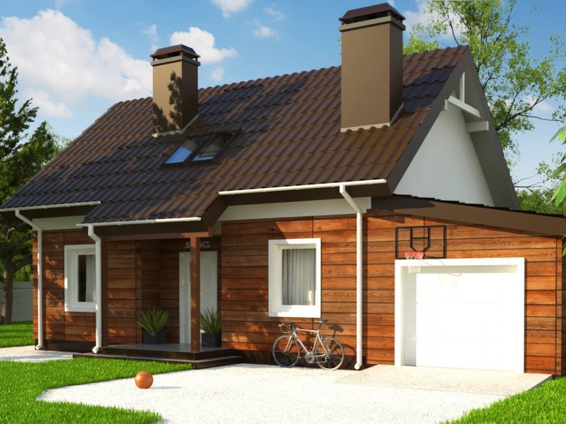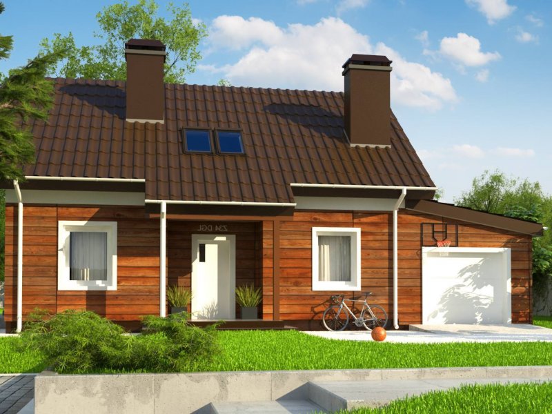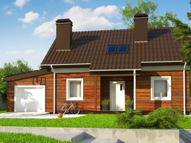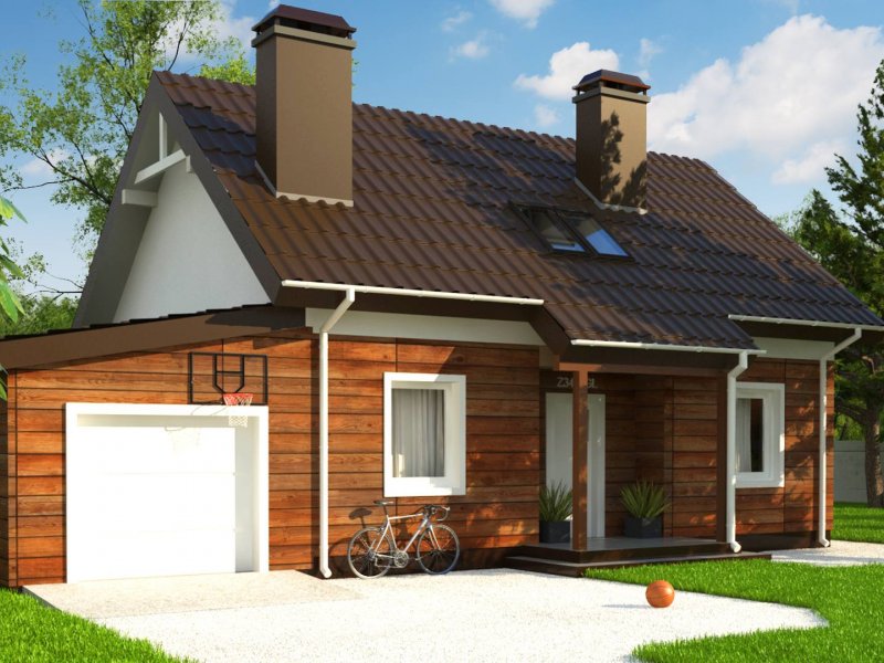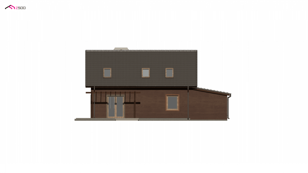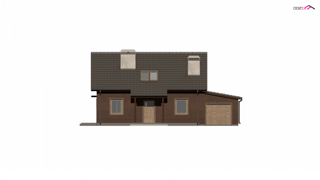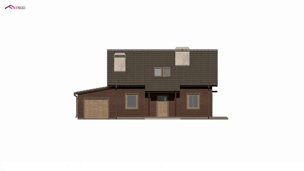 Wariant w szkielecie drewnianym z doprojektowanym garażem.