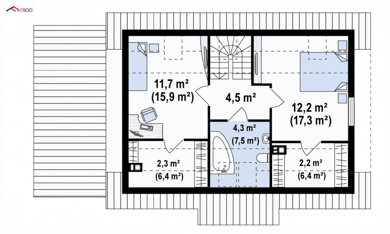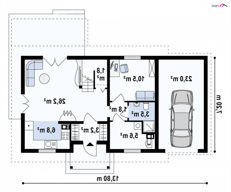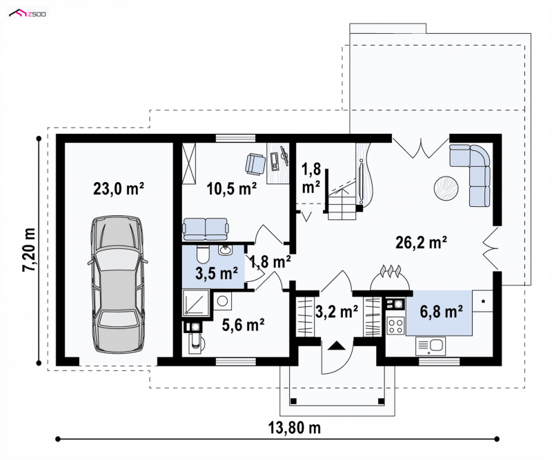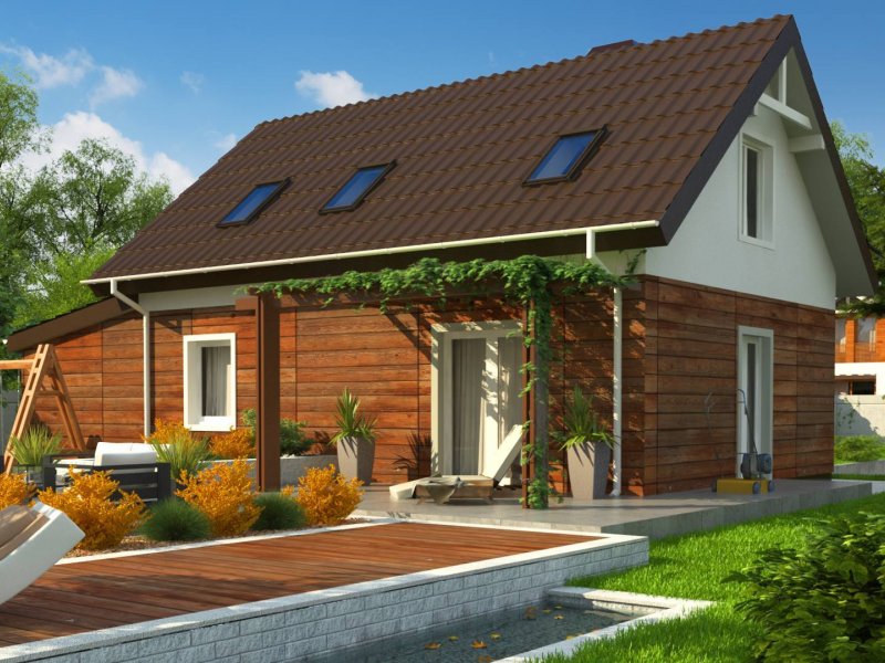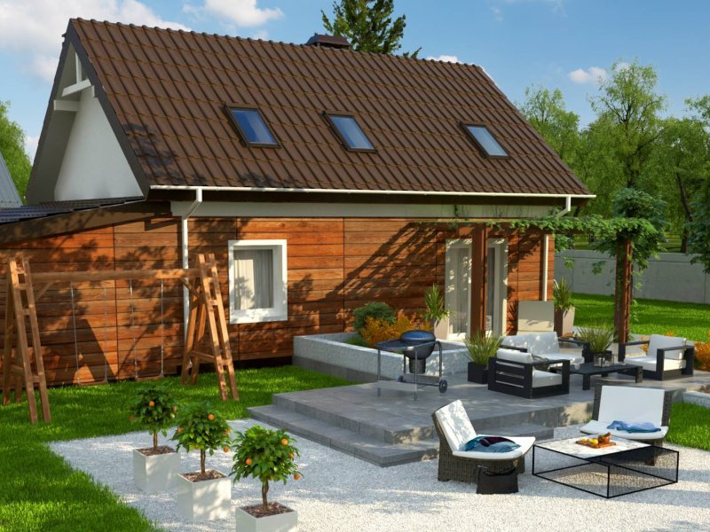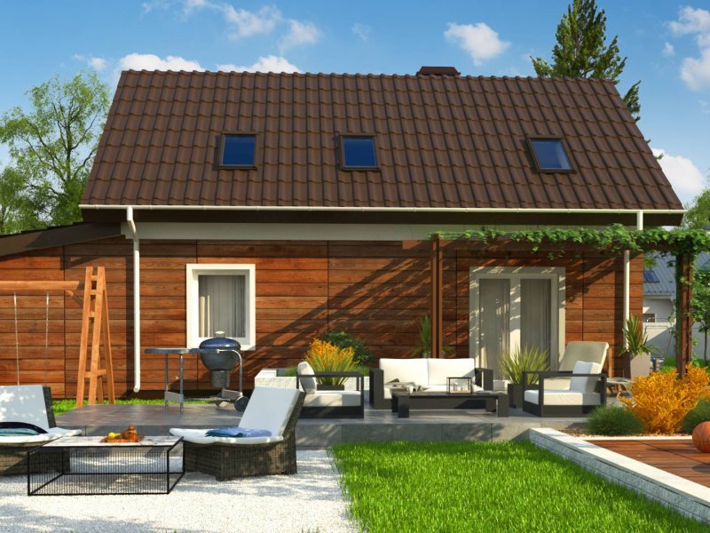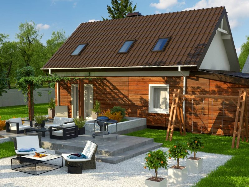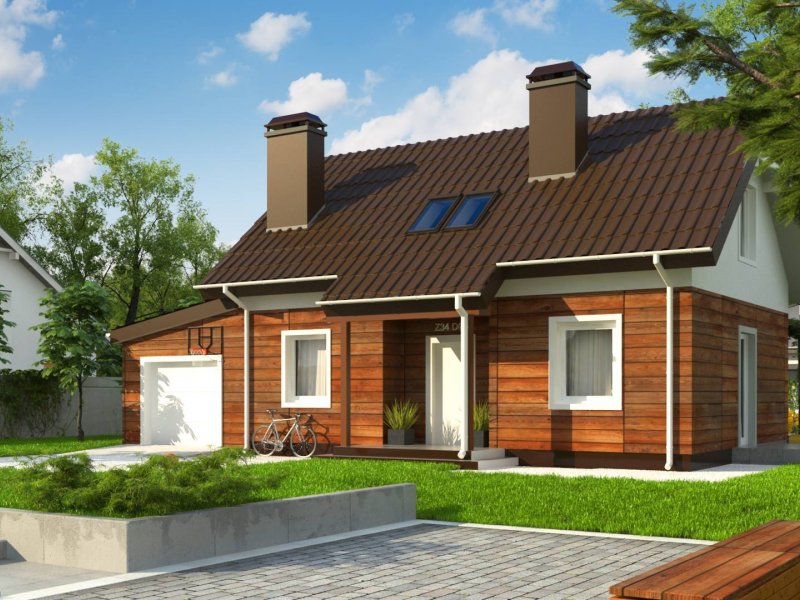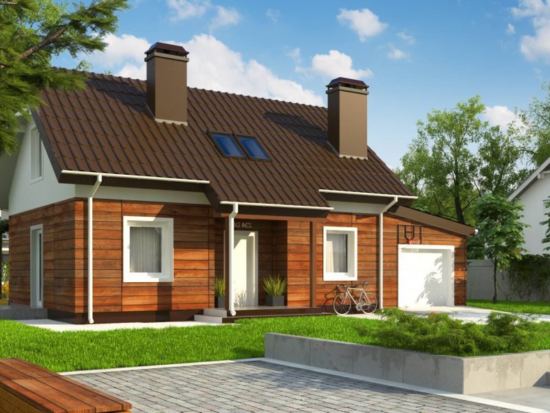 Wariant w szkielecie drewnianym z doprojektowanym garażem.