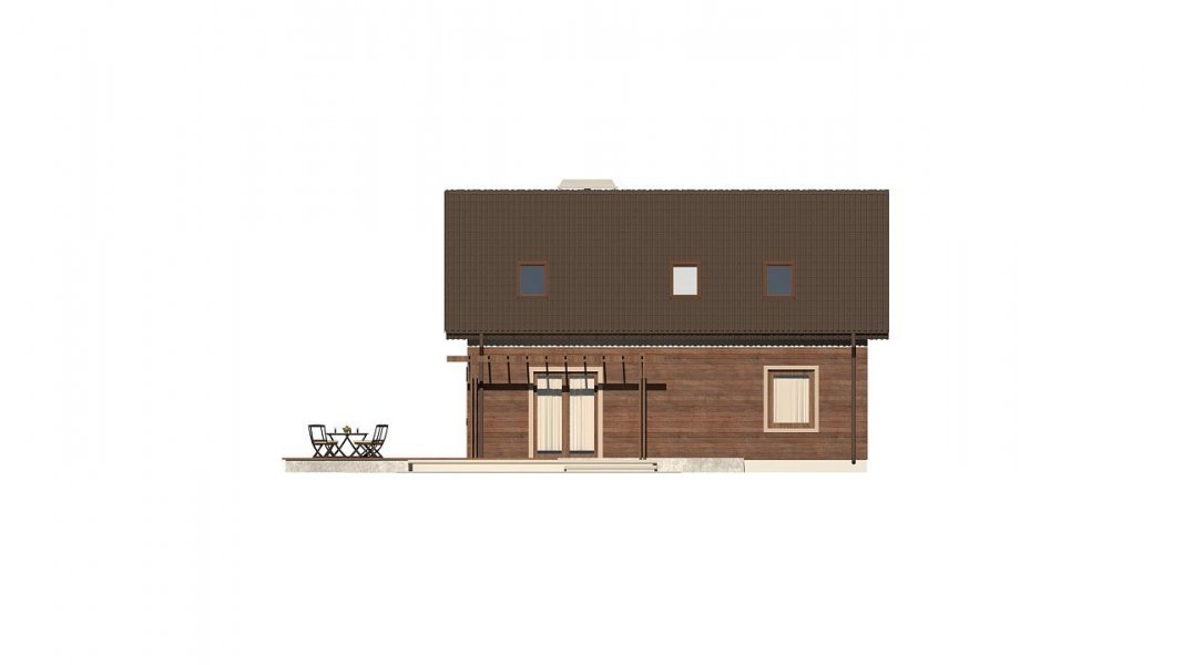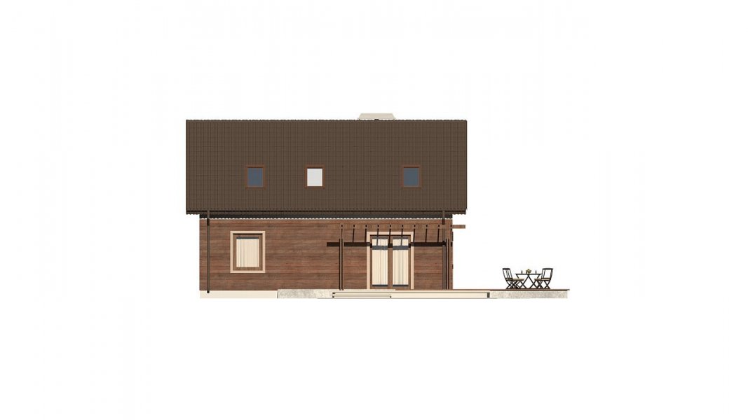 Wariant domu w technologii szkieletowej, wersja LUSTRO- W rzucie parteru wykonano minimalne zmiany w układzie okien i drzwi na taras.
