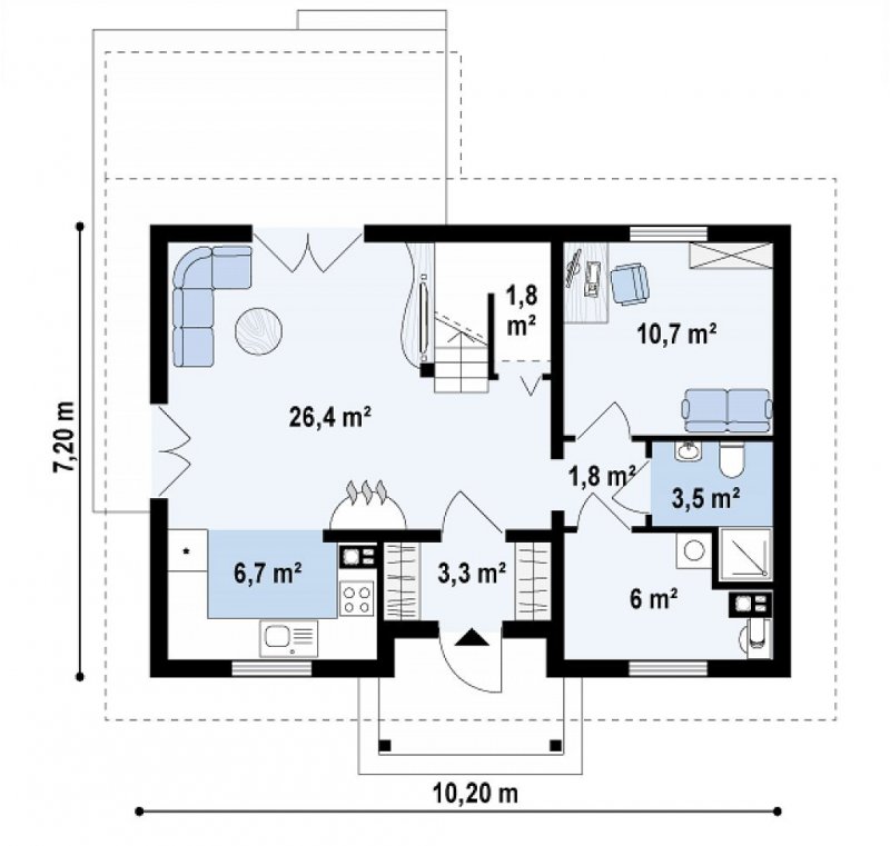 - Powierzchnia zabudowy 73.44 m²