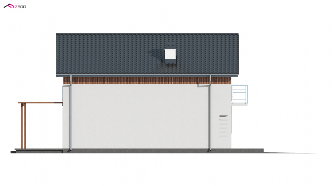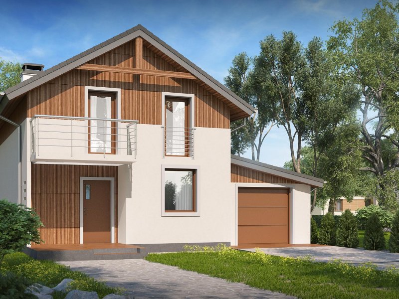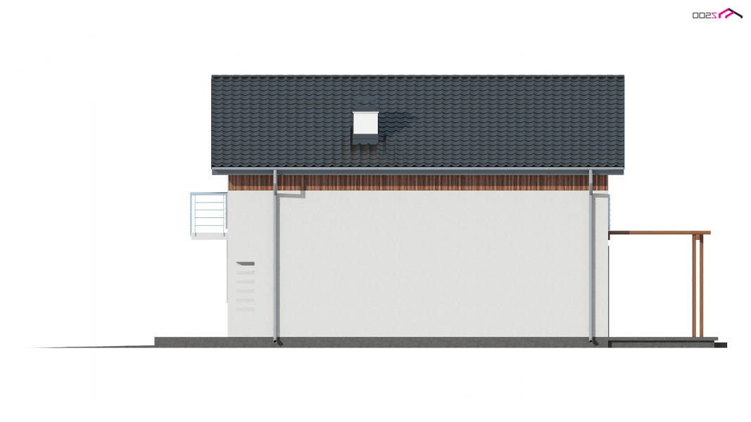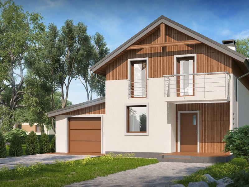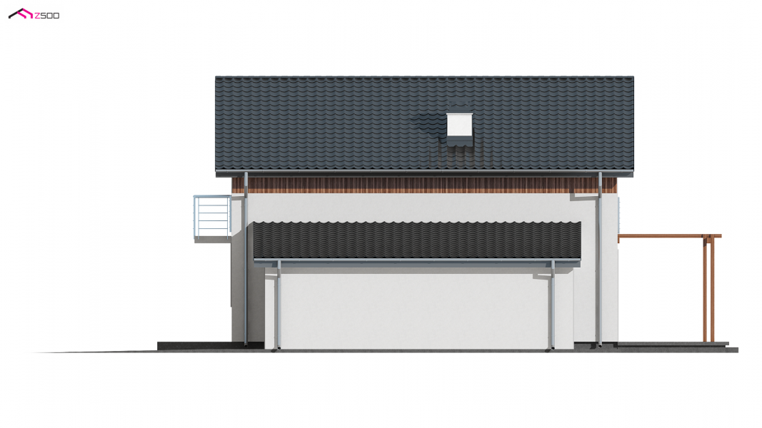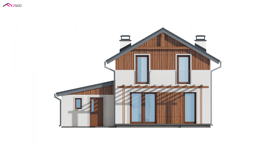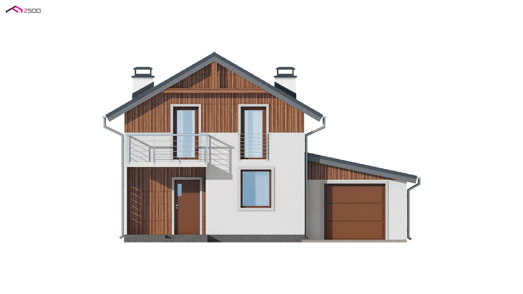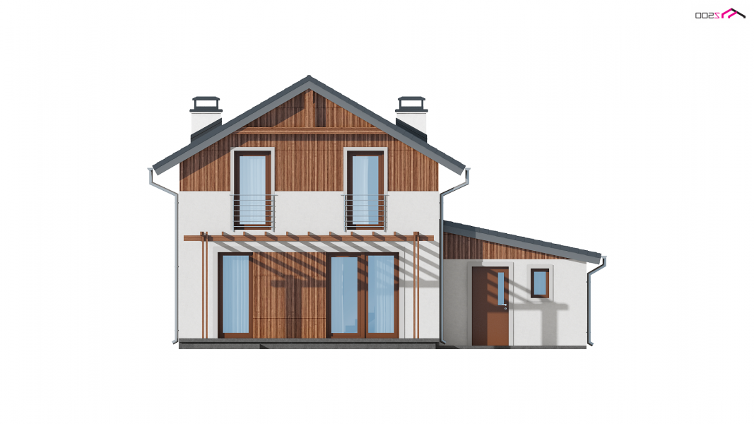 Wersja w technologii szkieletowej w odbiciu lustrzanym z garażem po prawej stronie. Sam domek został odbity w lustrze, a następnie dostawiono do niego garaż po prawej stronie z dachem pulpitowym.