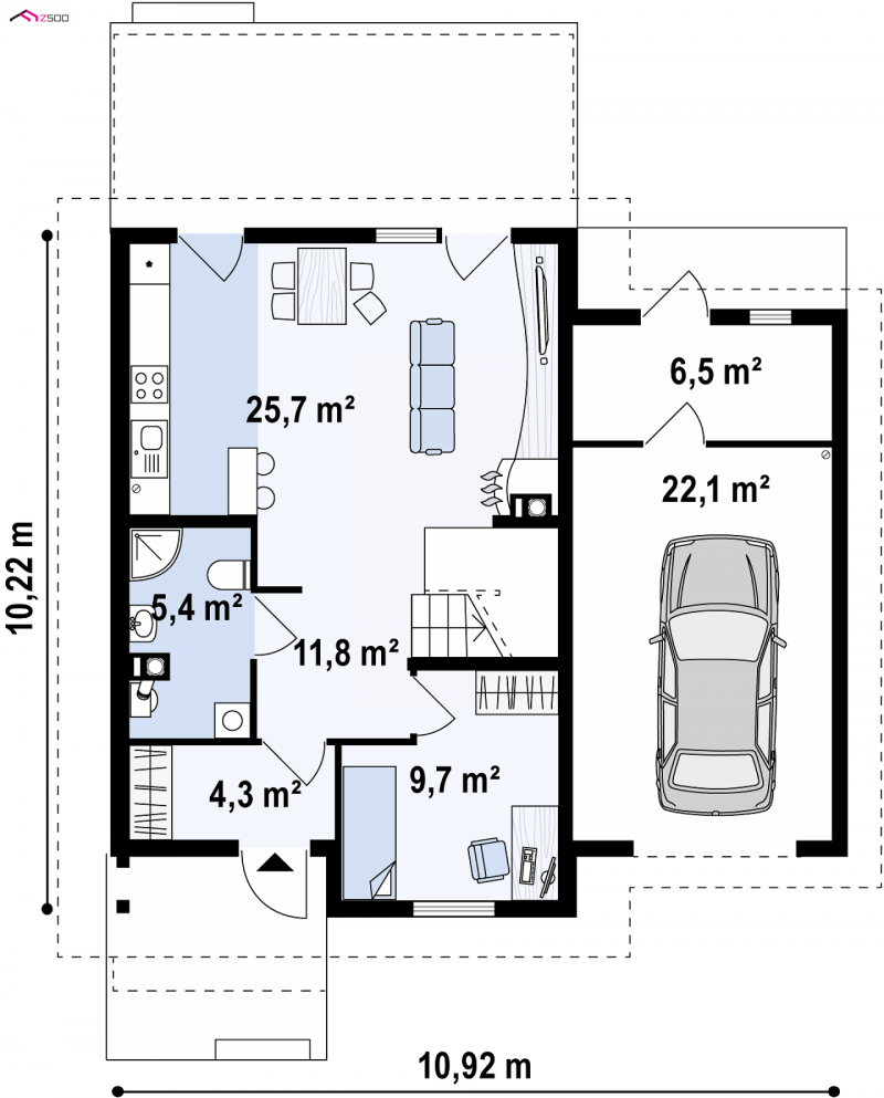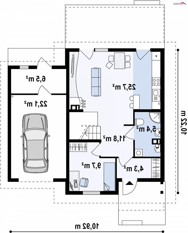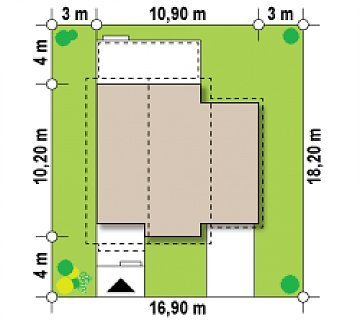 - Min. wymiary działki 18.22x16.92 m