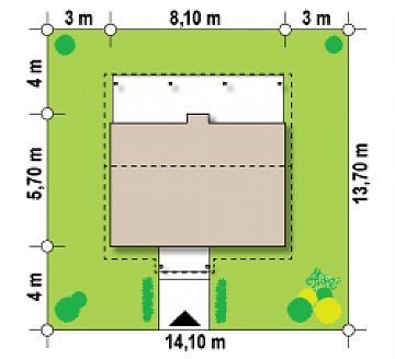- Min. wymiary działki 13.70x14.10 m