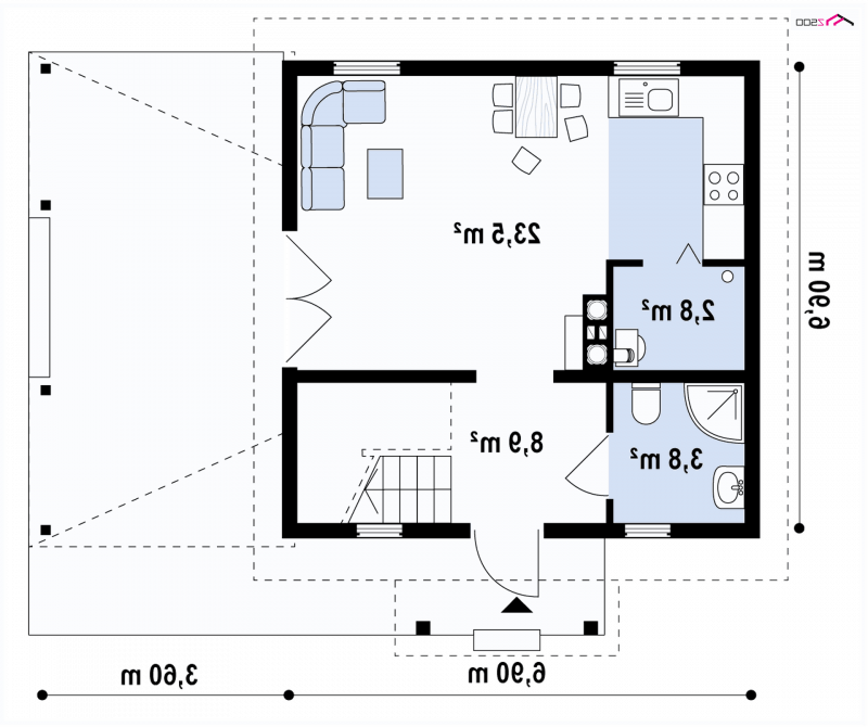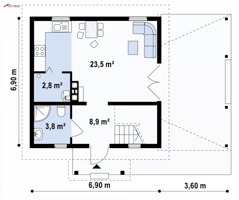 Projekt Z57 D to przytulny i „zdrowy” dom, zaprojektowany w technologii drewnianej. Dom może być wykorzystany jako całoroczny lub letniskowy. Mimo bardzo małej powierzchni może w nim wypocząć kilkuosobowa rodzina, oraz ich goście. Atutem jest duża weranda sprzyjająca letniemu lenistwu.