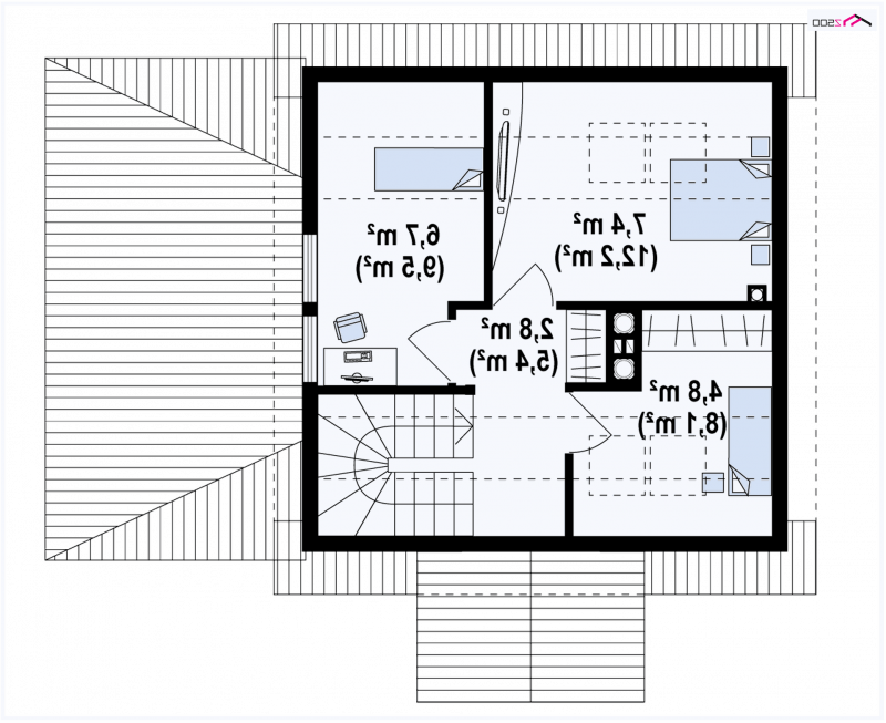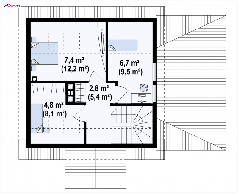 Poddasze przeznaczone jest do wypoczynku nocnego - są tu trzy pokoje z przeznaczeniem na sypialnie. Istnieje także możliwość przekształcenia najmniejszego pokoju na dodatkową łazienkę.
