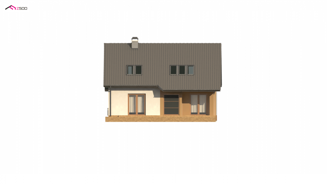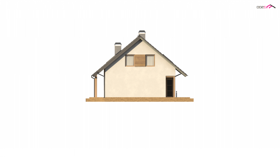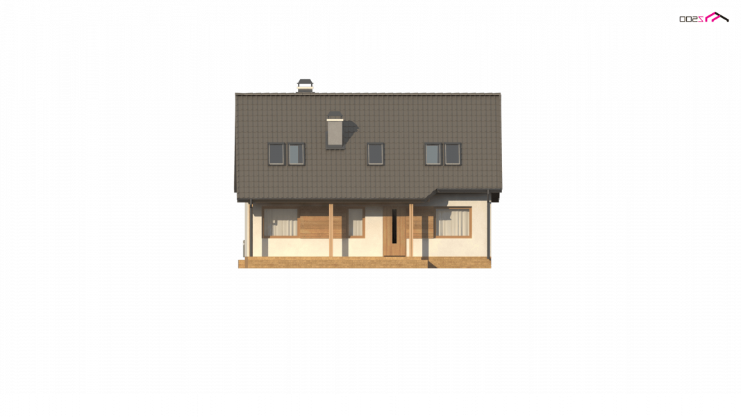 Wersja w technologii drewnianej z zabudowanym podcieniem (zmiany przy wejściu do budynku).