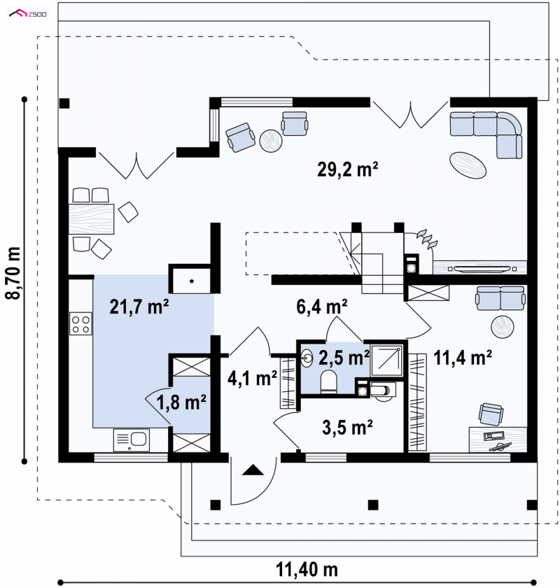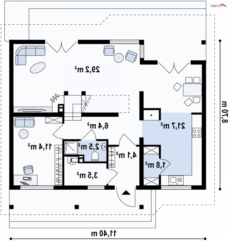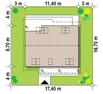 - Min. wymiary działki 16.70x19.40 m