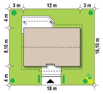 - Min. wymiary działki 16.10x18.00 m
