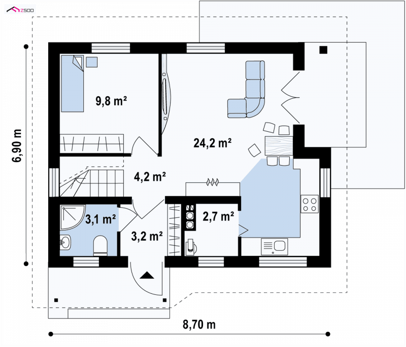 Z71 DL to idealny dom dla ludzi ceniących prostą formę, a zarazem praktyczność. Pełna gama pomieszczeń, sprawia, że znajdzie się tam miejsce dla każdego.