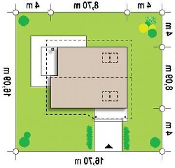 - Min. wymiary działki 14.90x16.70 m