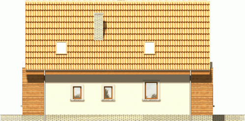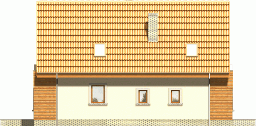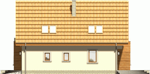 Ściany budynku zaprojektowano z betonu komórkowego ocieplonego styropianem lub w innej technologii w ramach adaptacji. Strop gęstożebrowy, więźba drewniana, pokrycie dachówką ceramiczną lub cementową. Inne pokrycia w ramach adaptacji. Elewacje tynkowane, elementy fasad okładane w zależności od projektu płytką klinkierową, deskami lub tynkowane.