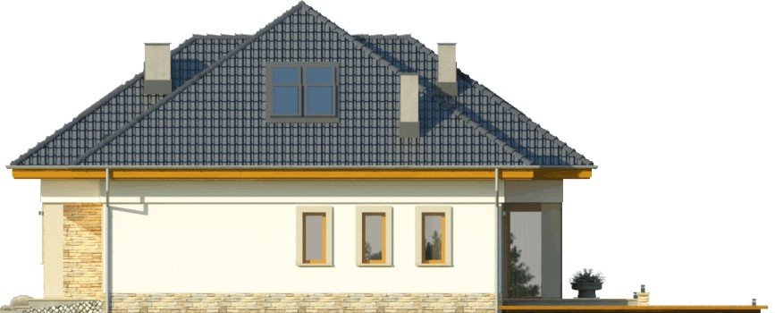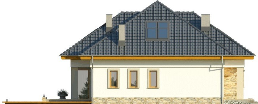 Elewacje posiadają nowoczesne detale i proporcje, decydujące o raczej współczesnym charakterze budynku. Projekt dostępny jest również w odbiciu lustrzanym.